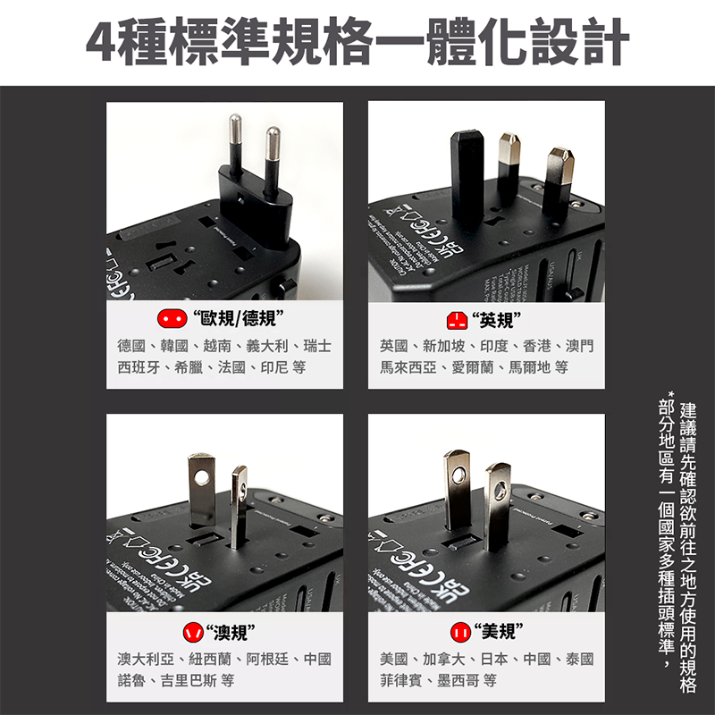 ◎ 多種規格(美規/澳規/歐規/德規/英規)任意轉換
