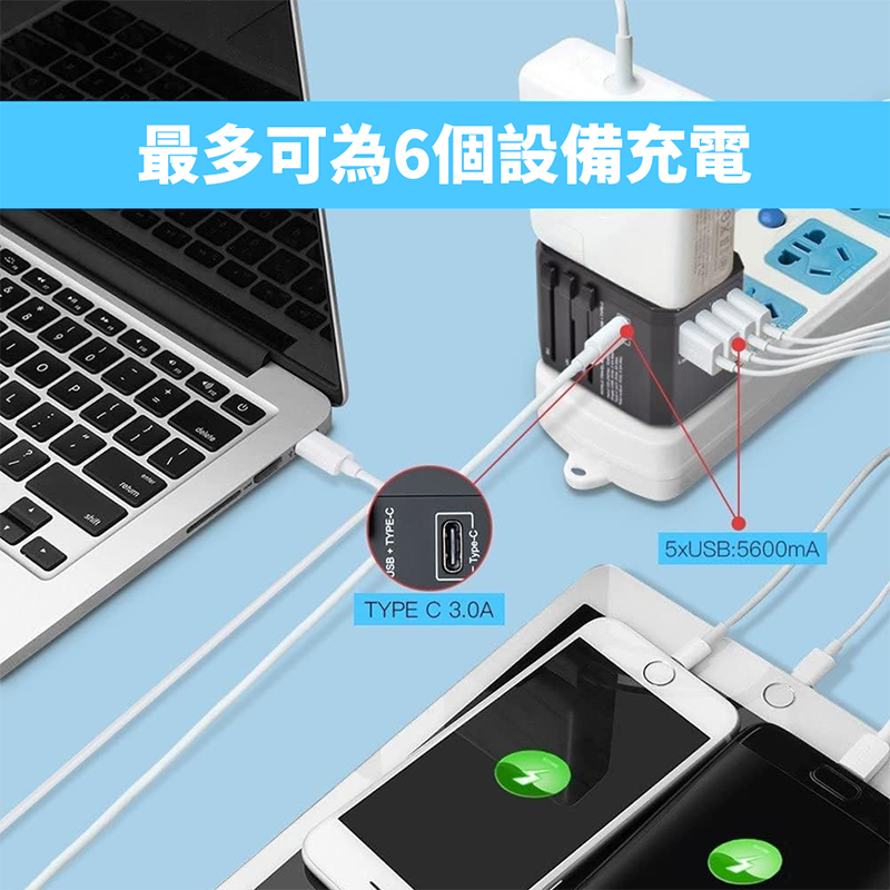 ◎ 4USB+1TypeC接口,5.6A大電流輸出