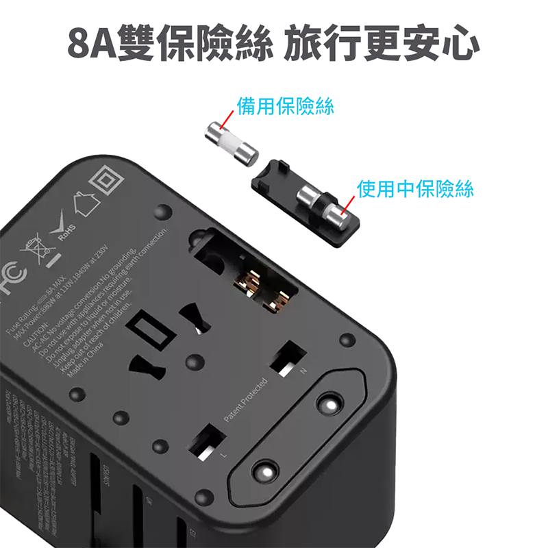 ◎ 內附2顆8A保險絲(1顆使用1顆備用),讓旅途加倍安心