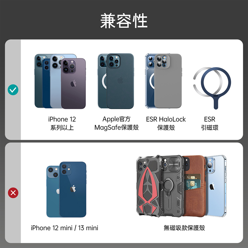 適用於 iPhone 12系列以上機型 (iPhone 12 mini / 13 mini 機型較小,不適用此產品)