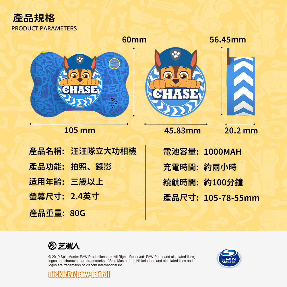 ●正版汪汪隊授權相機,熱門角色阿奇、天天、小礫、毛毛多款選擇