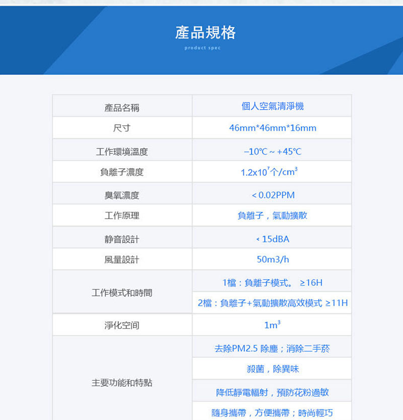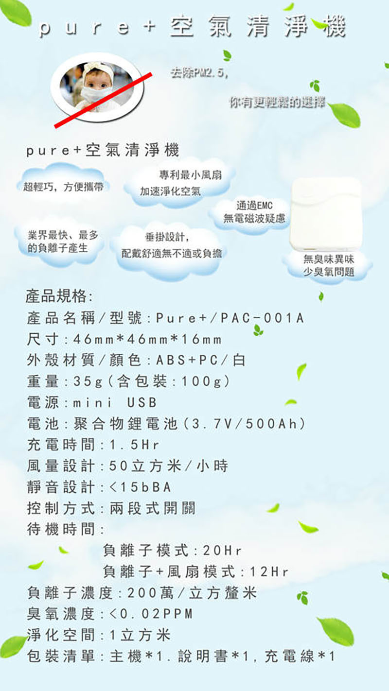 產品名稱:Rainbow-Pure+負離子空氣清淨機