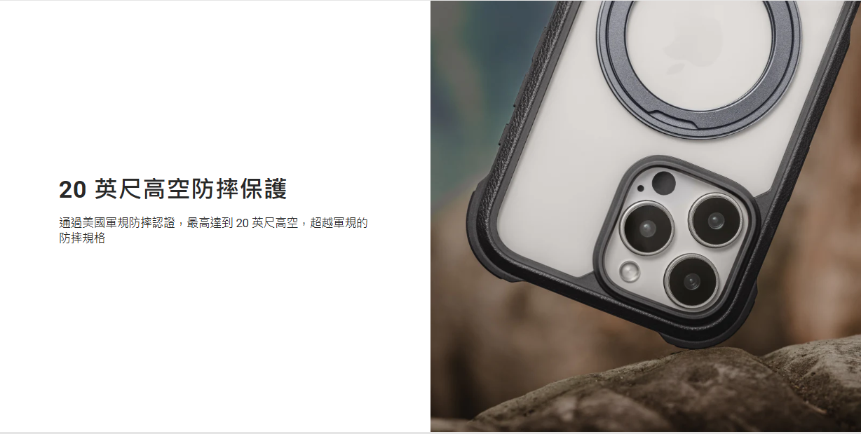 通過美國軍規防摔認證,最高達到 20 英尺高空,超越軍規的防摔規格。