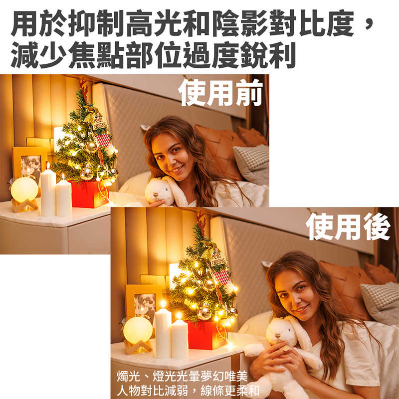 ◎ 抑制高光和陰影對比度,減少焦點部位過度銳利