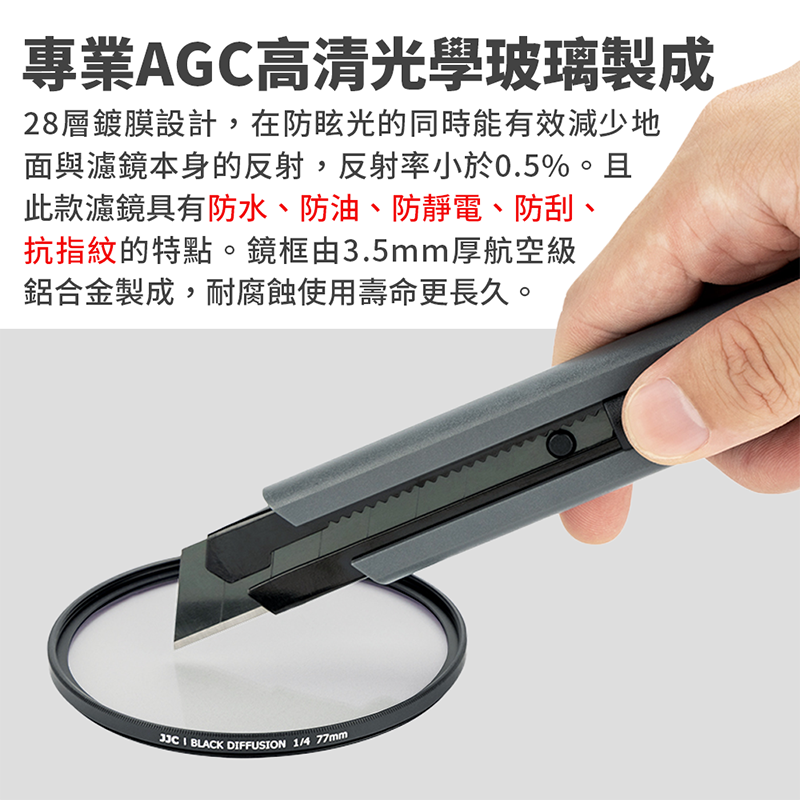 ◎ 鏡片由專業AGC高清光學玻璃製成,28層鍍膜設計,反射率小於0.5%