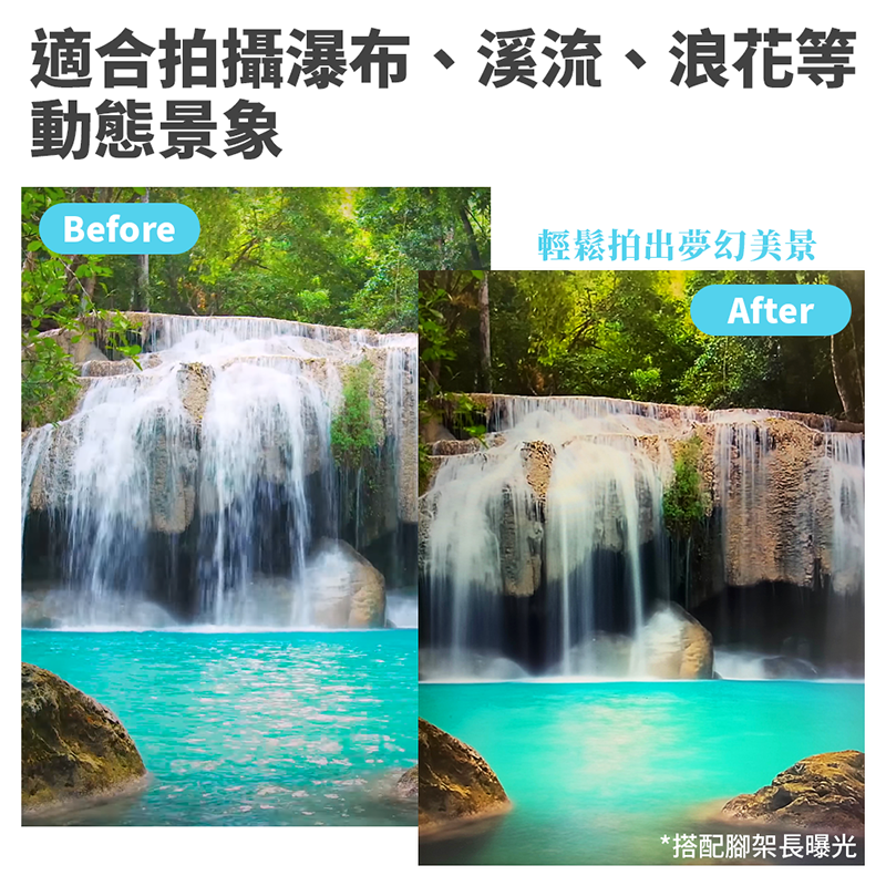◎ 適合拍攝瀑布、溪流、浪花等動態景象