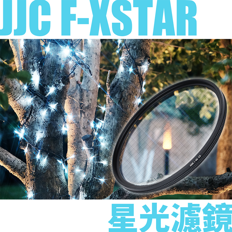 JJC F-XSTAR系列星光鏡採用優質光學玻璃製成,表面蝕刻有網格紋路。通過這些紋路,在拍攝點狀光源和反光強烈的物體時便可產生星芒的效果。適用於夜景拍攝、珠寶拍攝等。鏡框為優質鋁合金鏡框,堅固耐用。拍攝時,可旋轉鏡框上半部分以調節星芒的方向。濾鏡前端和後端都帶螺紋設計,可與其他濾鏡疊加使用。本系列濾鏡都附贈收納盒一個,便於攜帶和存放。JJC F-XSTAR系列星光鏡有4線(十字星芒)、6線(雪花星芒)和8線(米字星芒)可選。