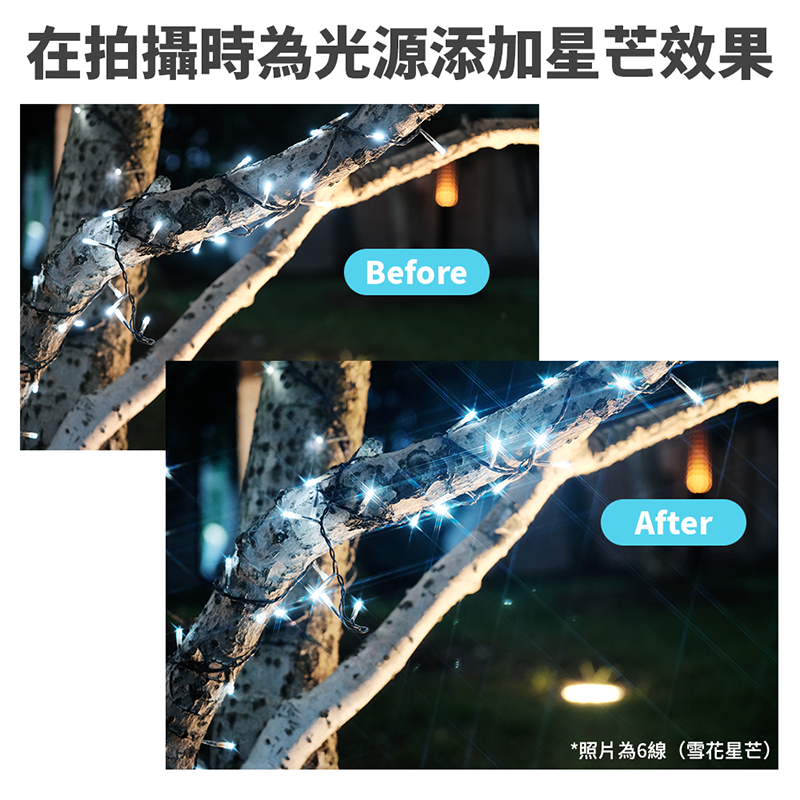 ◎ 在拍攝時為光源添加星芒效果