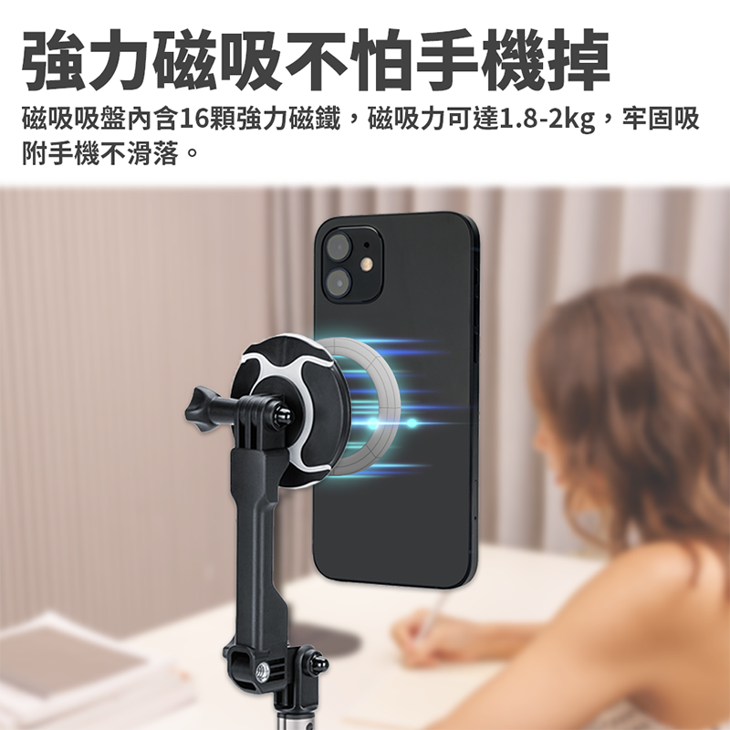 ◎ 磁吸吸盤內含16顆強力磁鐵,磁吸力可達1.8-2kg,牢固吸附手機不滑落