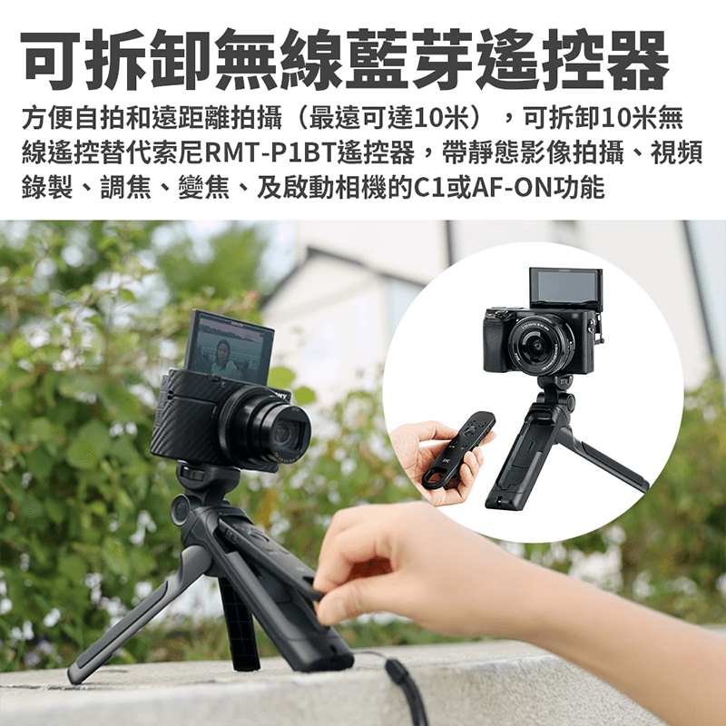 ◎ 可拆卸10米無線遙控替代索尼RMT-P1BT遙控器,帶靜態影像拍攝、視頻錄製、調焦、變焦、及啟動相機的C1或AF-ON功能