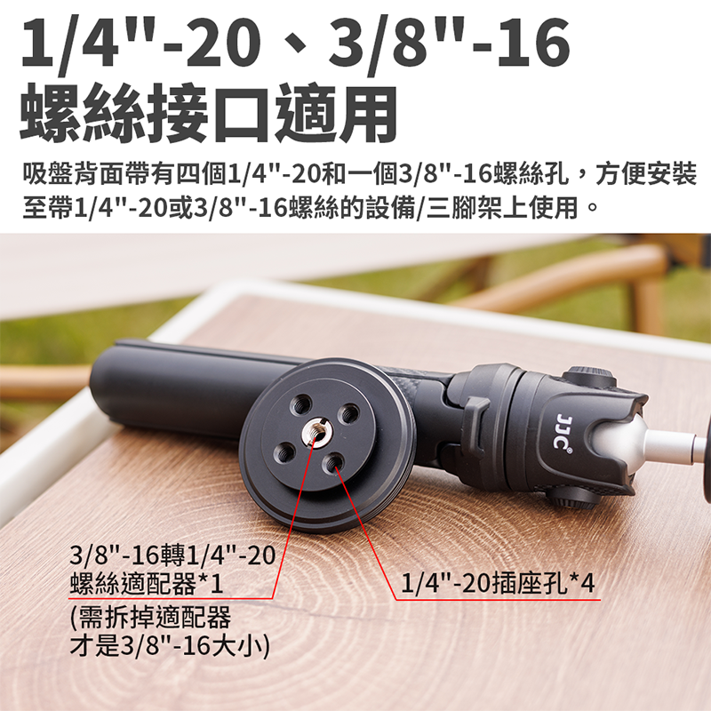 ◎ 可安裝至1/4"-20或3/8"-16螺絲的設備/三腳架上使用。