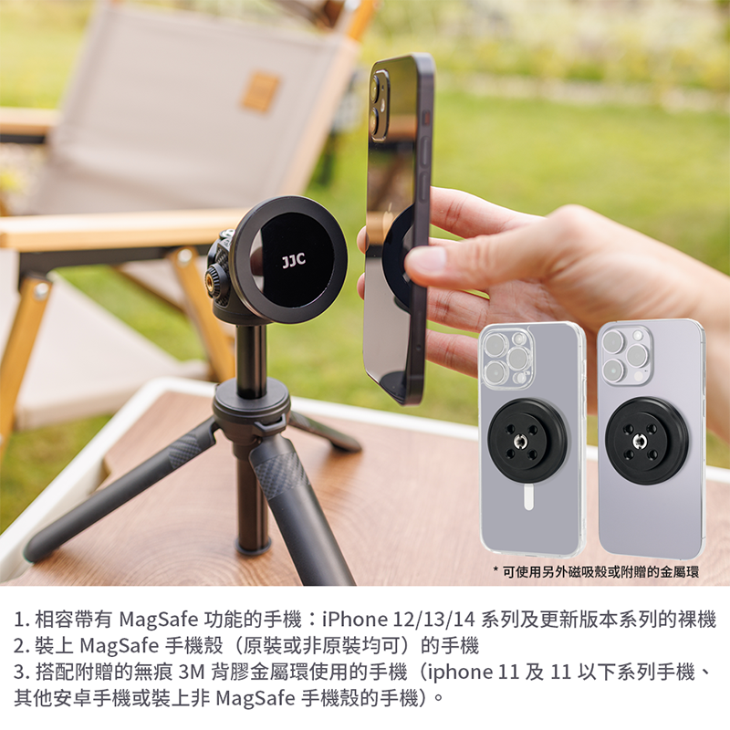 2. 非MagSafe的手機或手機殼, 可安裝上附贈3M背膠金屬片使用。