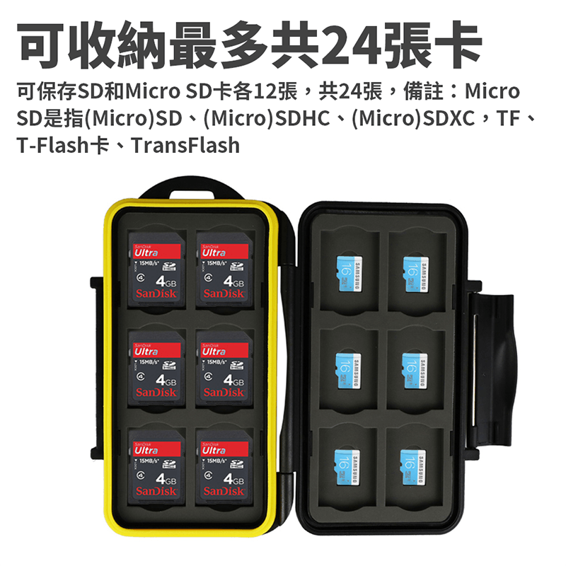 ◎ 可保存SD和Micro SD卡各12張,共24張,備註:Micro SD是指(Micro)SD、(Micro)SDHC、(Micro)SDXC,TF、T-Flash卡、TransFlash