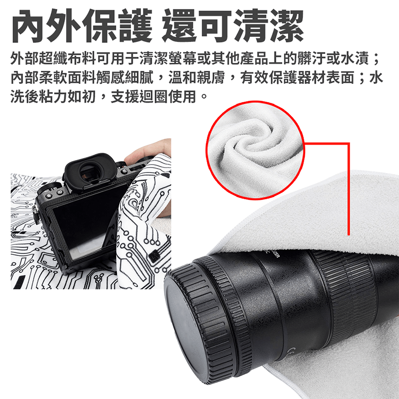 ◎ 外部超纖布料可用于清潔螢幕或其他產品上的髒汙或水漬
