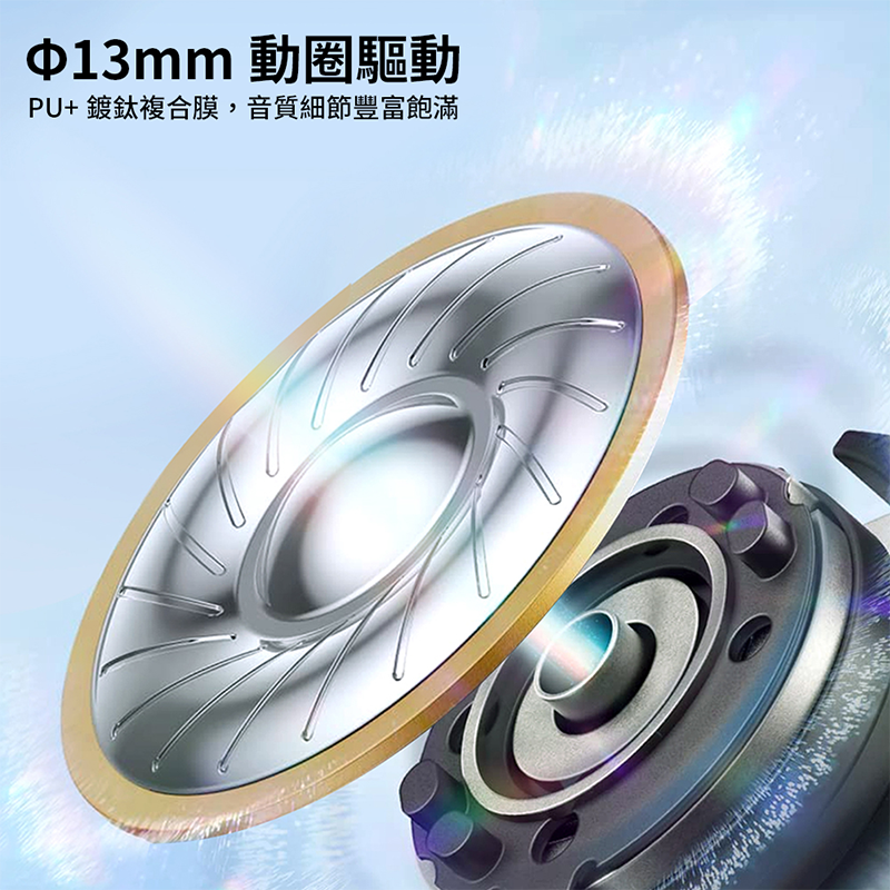 ◎ Φ13mm動圈驅動,PU+鍍鈦複合膜,音質細節豐富飽滿