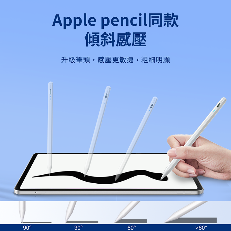 ◎ 傾斜感壓,當筆尖傾斜時,可根據傾斜的角度改變書寫時的筆跡粗細
