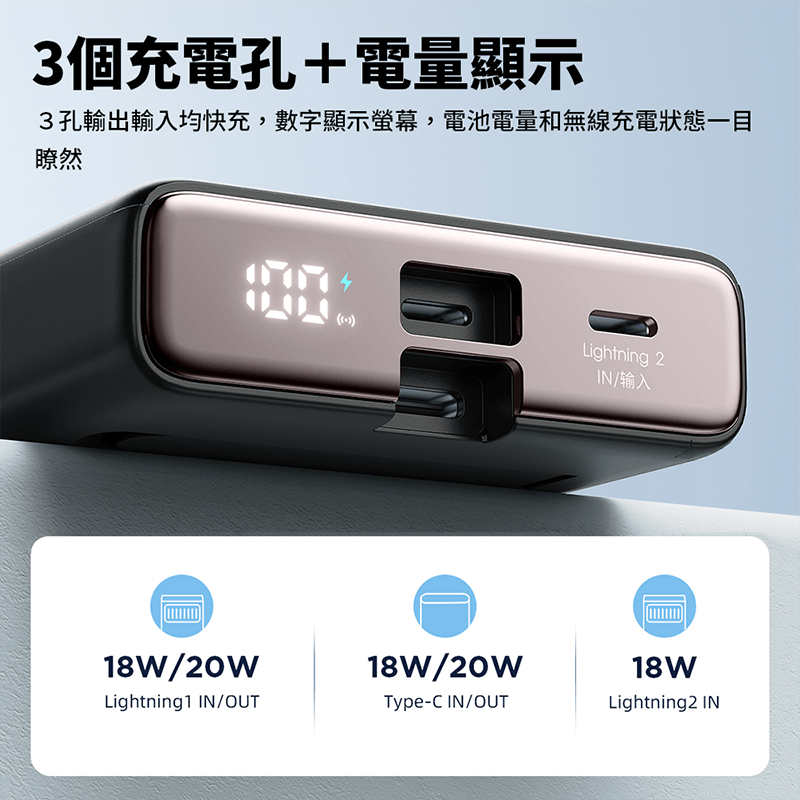 ◎ 數字顯示螢幕,電池電量和無線充電狀態一目了然