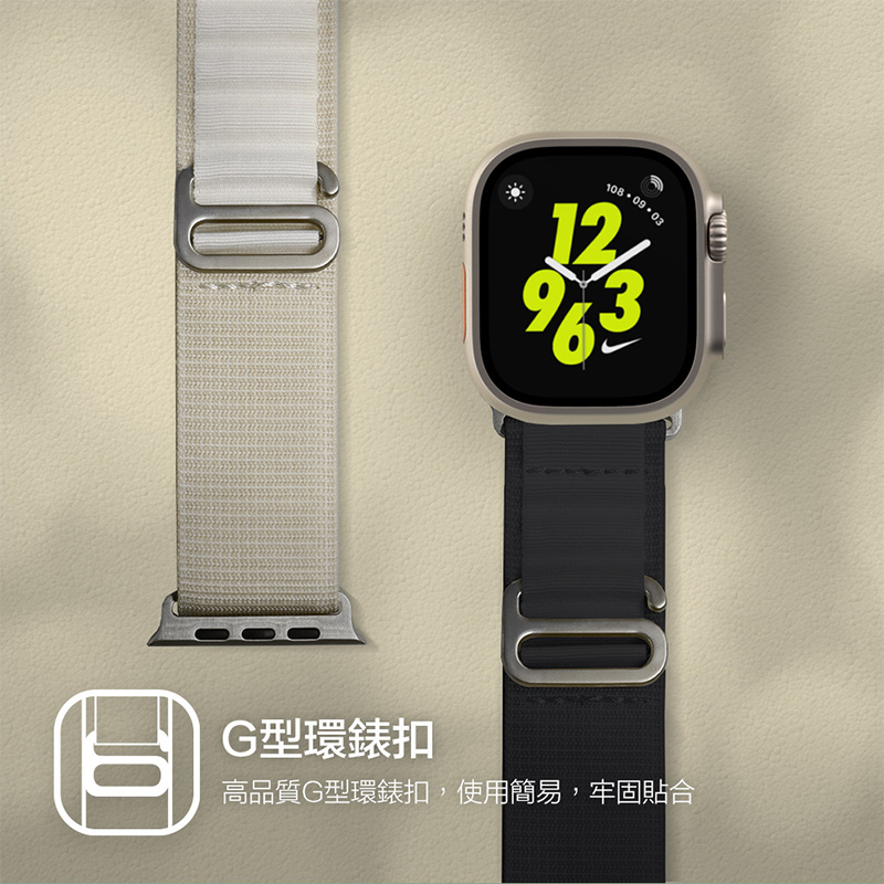 •高強度編織錶帶 •親膚尼龍材質•G型五金扣環