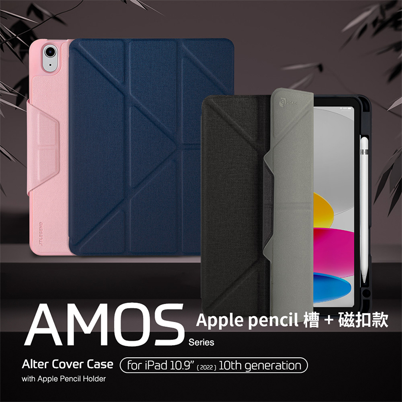 包裝內容物:JTLEGEND iPad 10th 2022 Amos 10.9吋 相機快取多角度折疊布紋皮套(含Apple pencil磁扣)x1