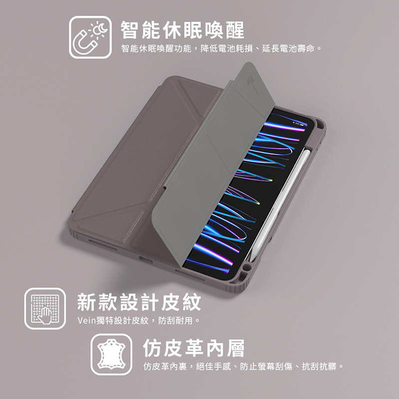 ◎ 智能休眠喚醒 - 不需額外設定,開闔面蓋就能輕鬆喚醒休眠iPad,降低電池耗損。