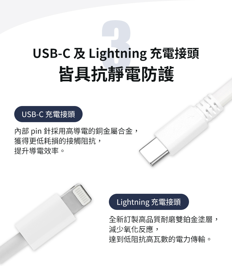 ・自帶2條20W快充充電線18.5cm,滿足各種裝置快充需求