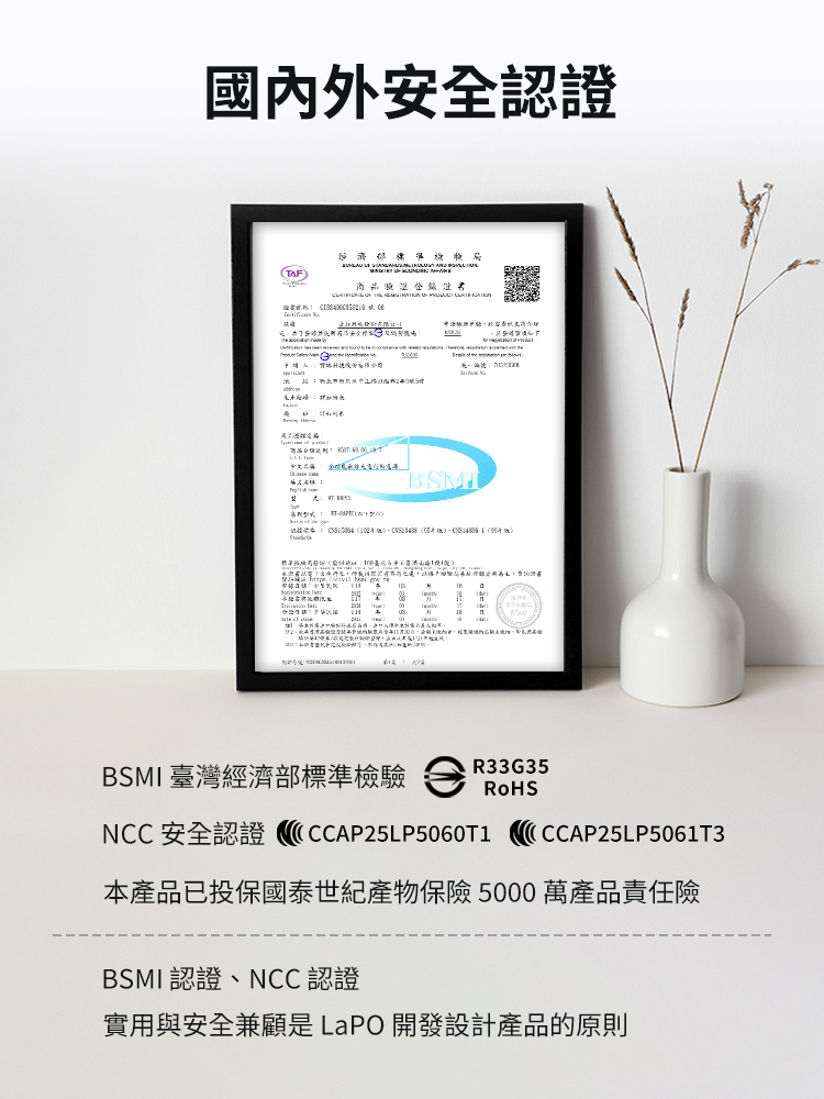 ・搭載智慧溫控管理晶片,取得BSMI/NCC國家安全認證