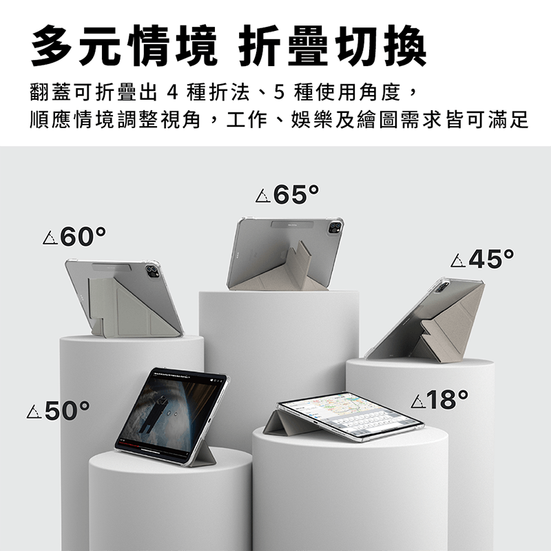 ◎ 翻蓋可折出 4 種支架型態,滿足多種視角