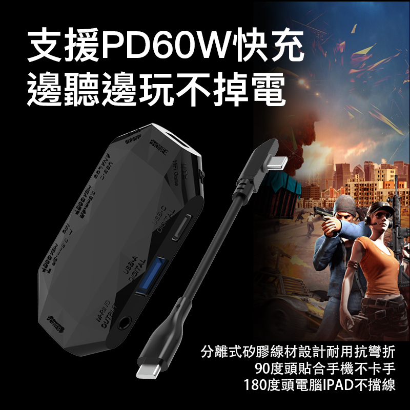 ◎ 支援PD60W快充,邊聽邊玩不掉電