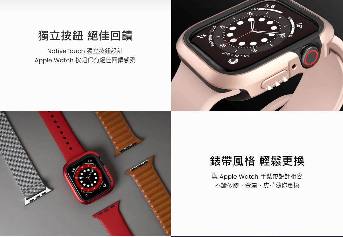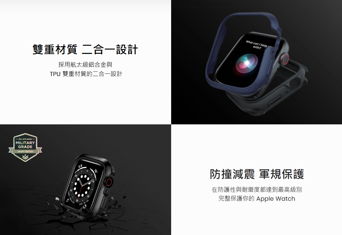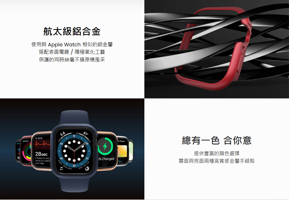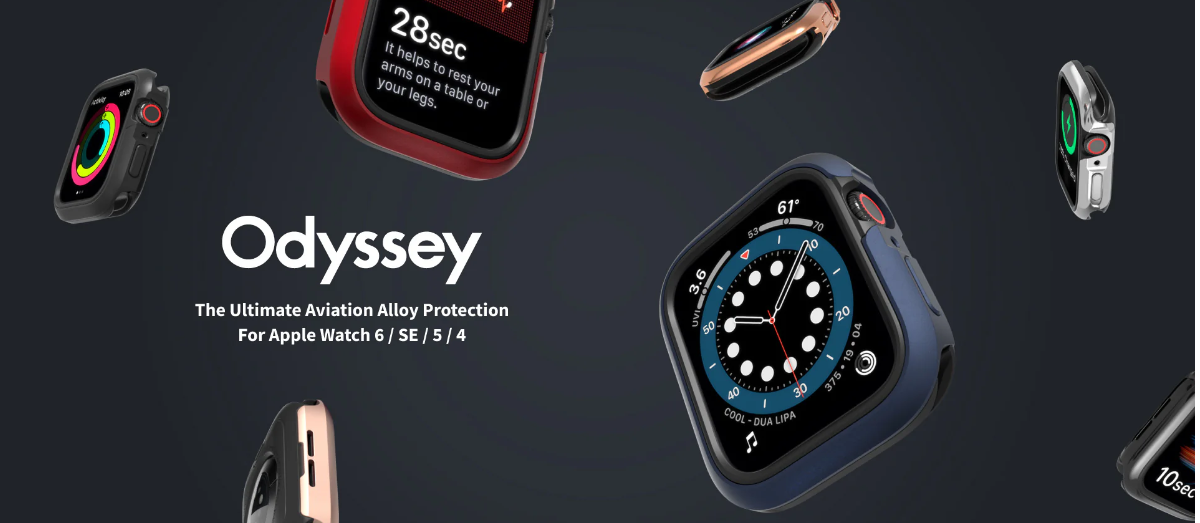 Odyssey採用與原廠同級的航太級鋁合金,搭配表面陽極氧化工藝,提供金屬多色選擇,還原Apple Watch 的精緻裸機金屬感,鋁合金搭配 TPU 的二合一結構,提供更抗衝擊的吸震防護兼顧保護與質感,更可搭配螢幕保護膜一起使用。