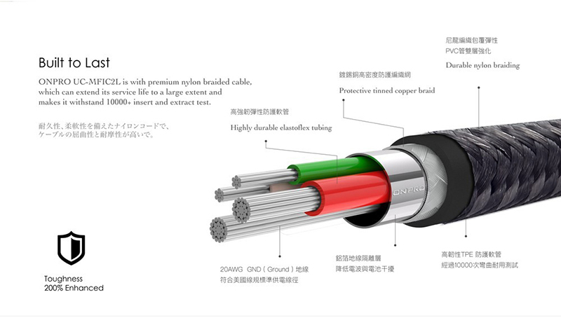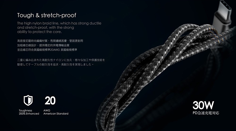 ◎ 加粗線芯線設計穩定的供電傳輸品質