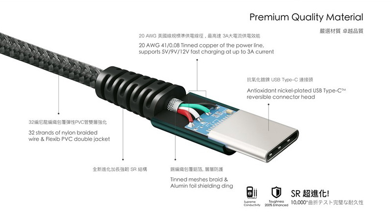 ◎ 超強化SR接頭設計延長堅韌耐用不易斷裂