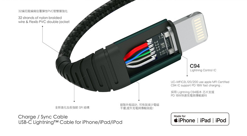 ◎ 採用Apple 最新Lightning C94 連接器