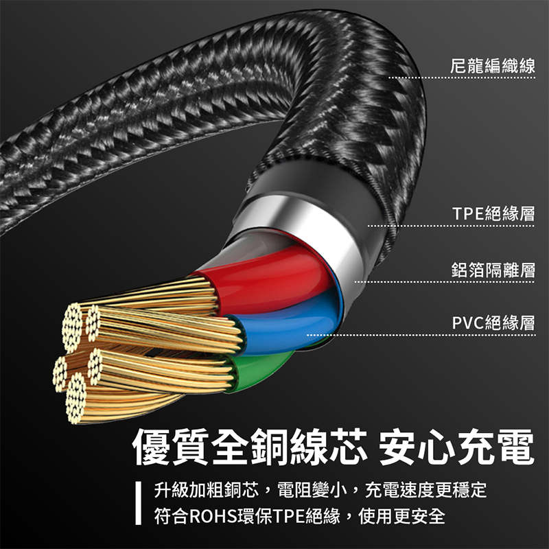 智能芯片安全快充,不傷機,可適用在iphone15充電,尼龍編織線,不纏繞抗拉不易斷裂