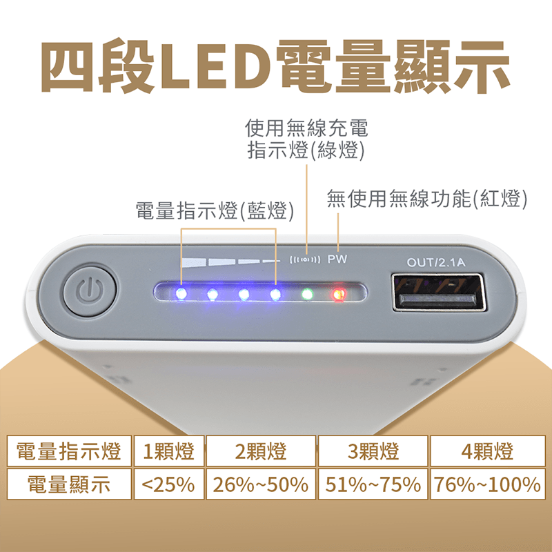 ˙無線充:DC 5V/1A(最大總輸出2.4A)
