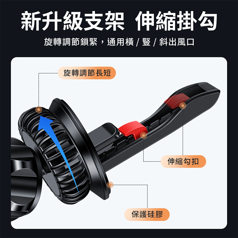 ◎ 伸縮鎖扣設計,自由調節,通用橫/豎/斜出風口