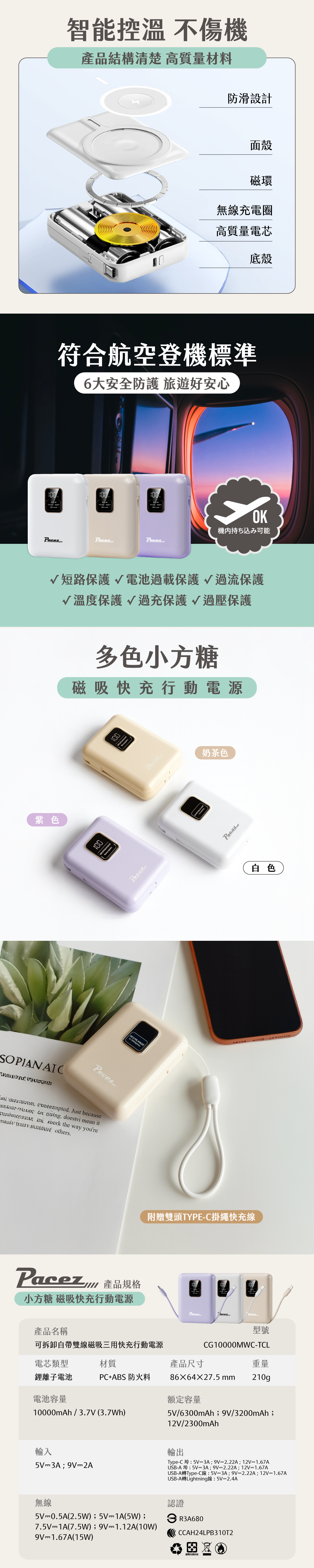 產品名稱: Pacez 小方糖 磁吸快充行動電源(8合1多功能整合)