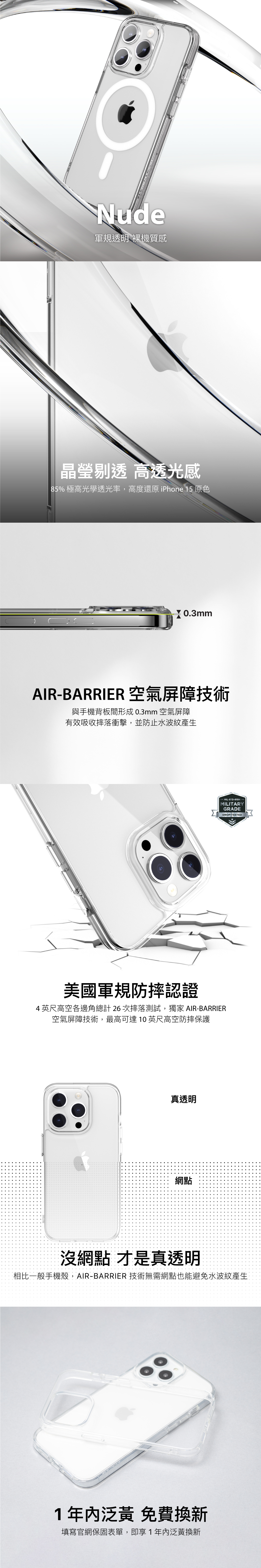 Nude 晶亮透明防摔手機殼 iPhone 15 Pro Max