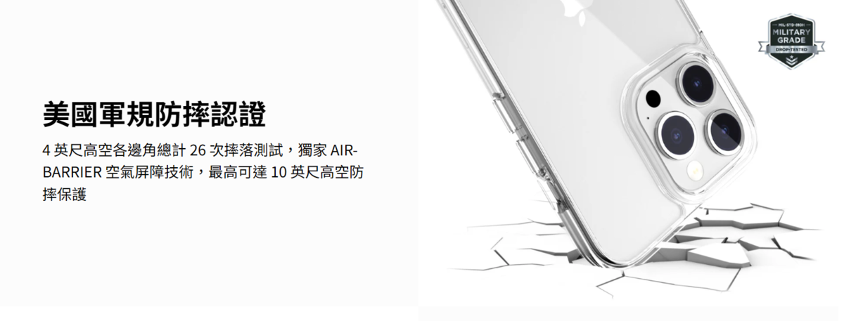 ■軍規防摔MILSTD-810H 測試證,過1.2公尺/4英尺