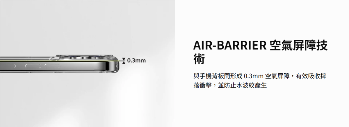 ■0.3mm AIRBARRIER 設計,將手機背板形成 0.3mm