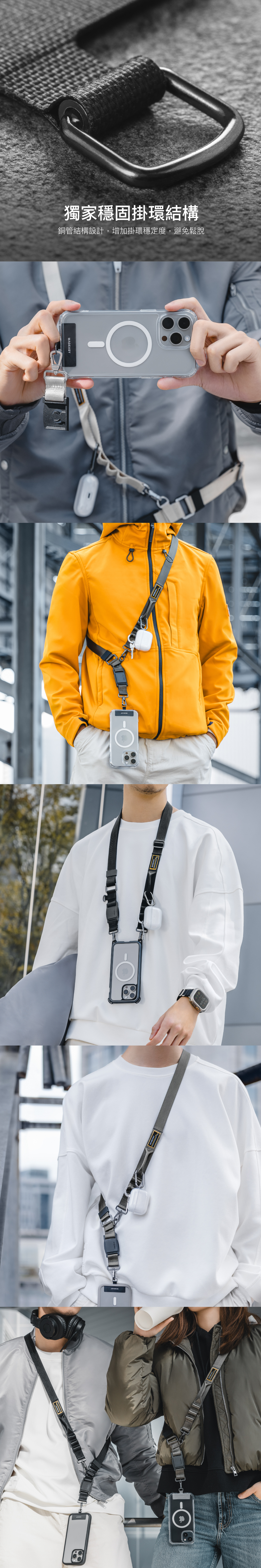 ‧ 以 D 型環為掛繩掛鉤扣點,可獨立卸下手機