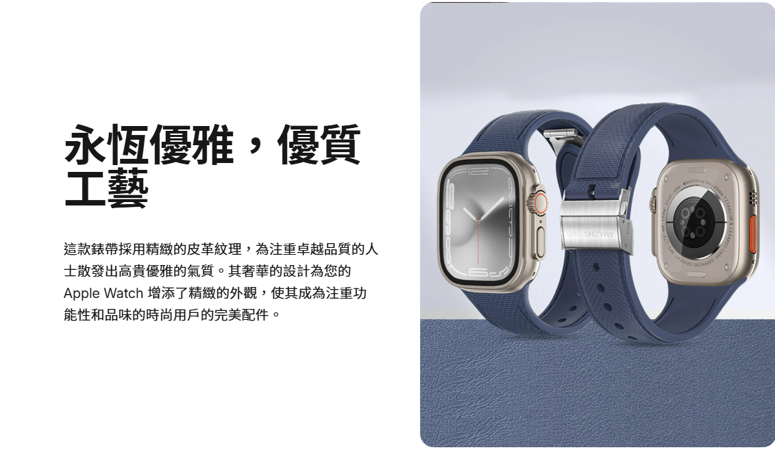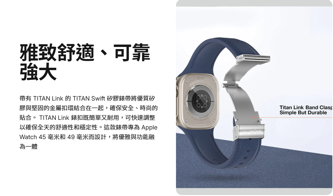 提升您的Apple Watch體驗,選用Titan Swift錶帶。具備高級皮革紋理設計和升級的配接器,確保穩固、時尚貼合。耐用的Titan Link扣環提供方便調節和無與倫比的舒適感,適合任何場合。設計優雅兼具功能性,這個錶帶會讓您的Apple Watch成為精緻的陳述。