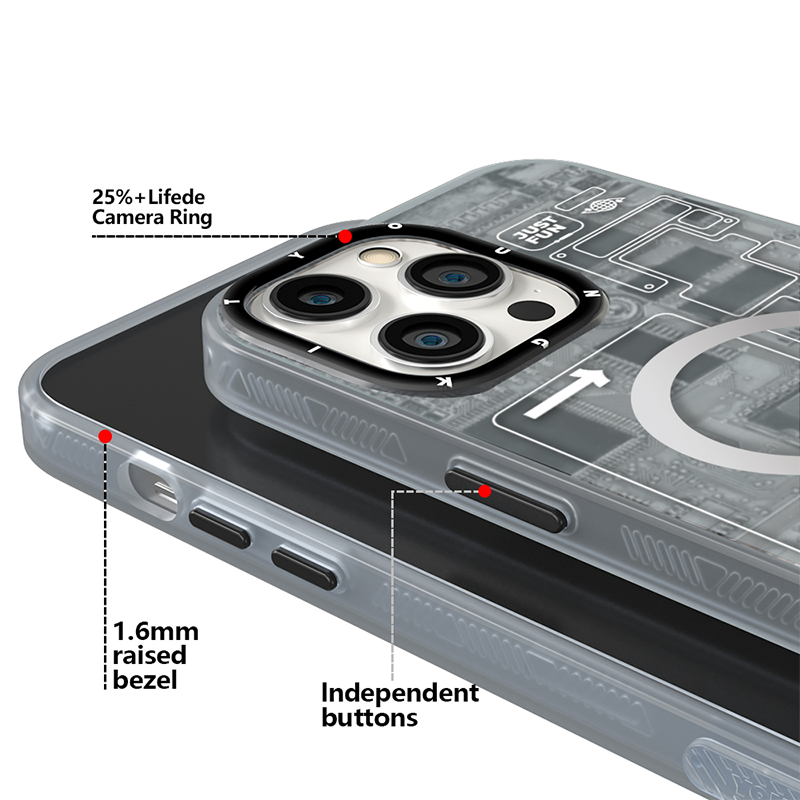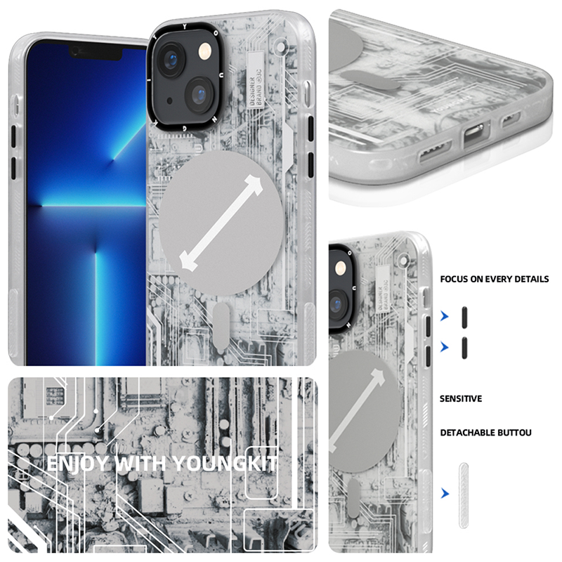 ◎ 以賽博朋克與電子科技的融合為靈感,從電子科技的基本電路板風格中提取設計元素與之呼應,從而體現未來科技的藝術魅力,賦予手機外殼新的生命,緊跟時代潮流。