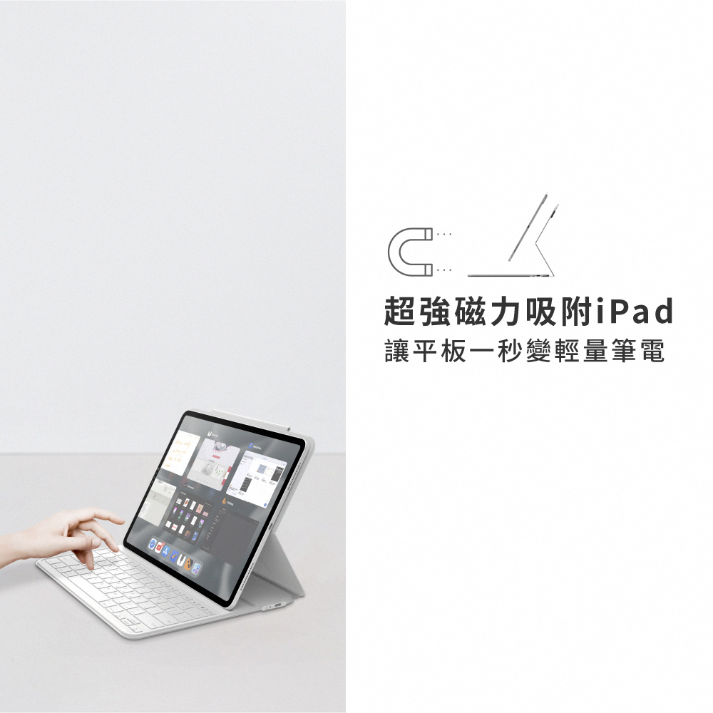 - 超強磁力吸附 iPad,平板一秒變輕量筆電