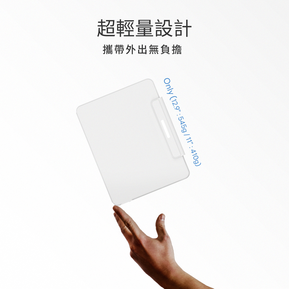 - 超輕量設計,545g(12.9”)/410g(11”) 攜帶無負擔