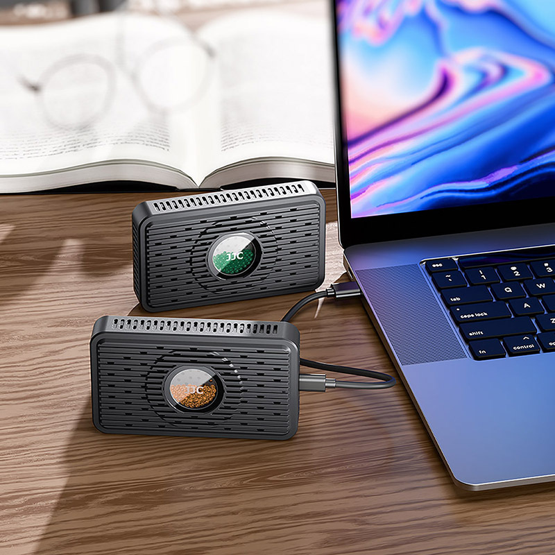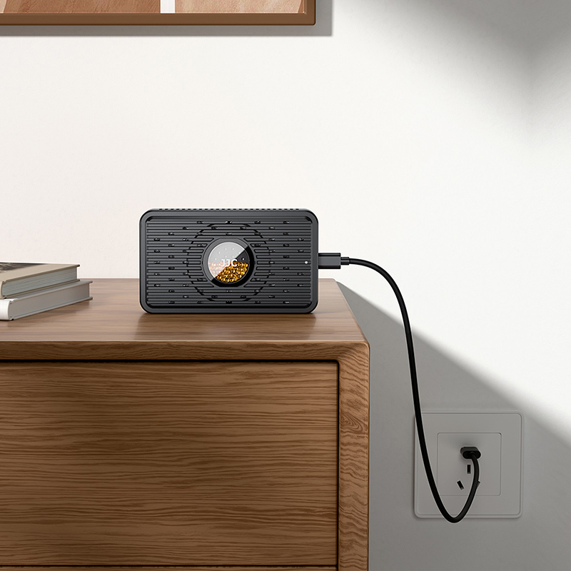 ● 配備Type-C 介面及數據線,充分吸濕后通電烘乾內部矽膠顆粒即可恢復吸濕能力