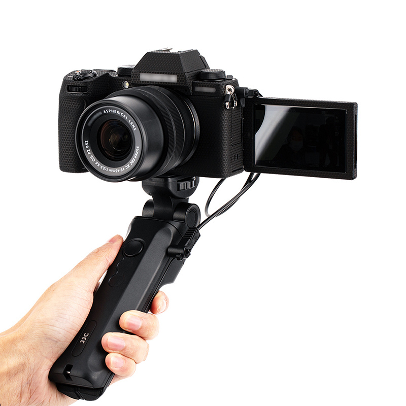 JJC TP-FJ1拍攝手柄可替代富士RR-100快門遙控,專為Vlog拍攝、直播及自拍設計。 手柄三腳架一體式設計,既可作手柄使用,又可作迷你三腳架使用。 360°全景旋轉,180°傾斜設計,本手柄單手便可操作,角度靈活,有效防抖,可提高拍攝的穩定性。 豎拍時使用,便於上傳視頻至平臺。 自拍時使用比直接使用相機拍攝,臉會顯得更小。 手柄帶遙控功能,可控制指定相機的快門及錄像功能。 此外,撥動撥輪即可輕鬆裝卸本手柄,保護您設備的安全。 手柄上的防滑墊設計,可增強摩擦力,提高穩定性、安全性。