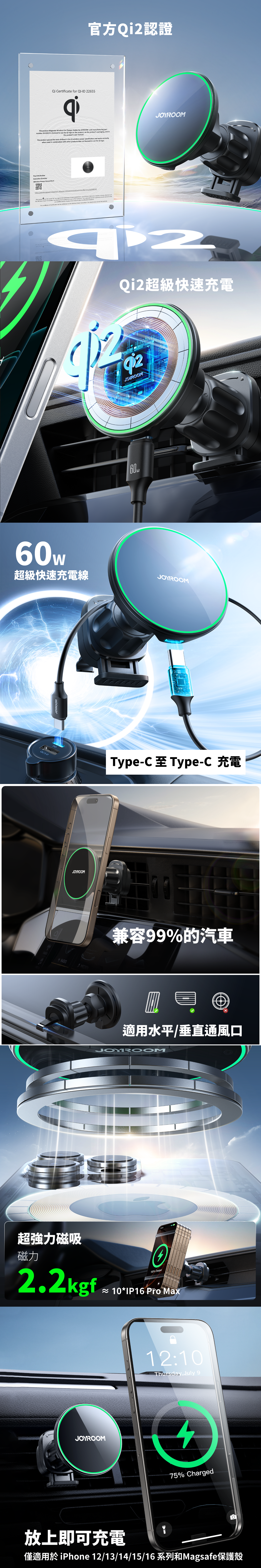 ◎ 全金屬磁吸無線充支架,靈活旋轉