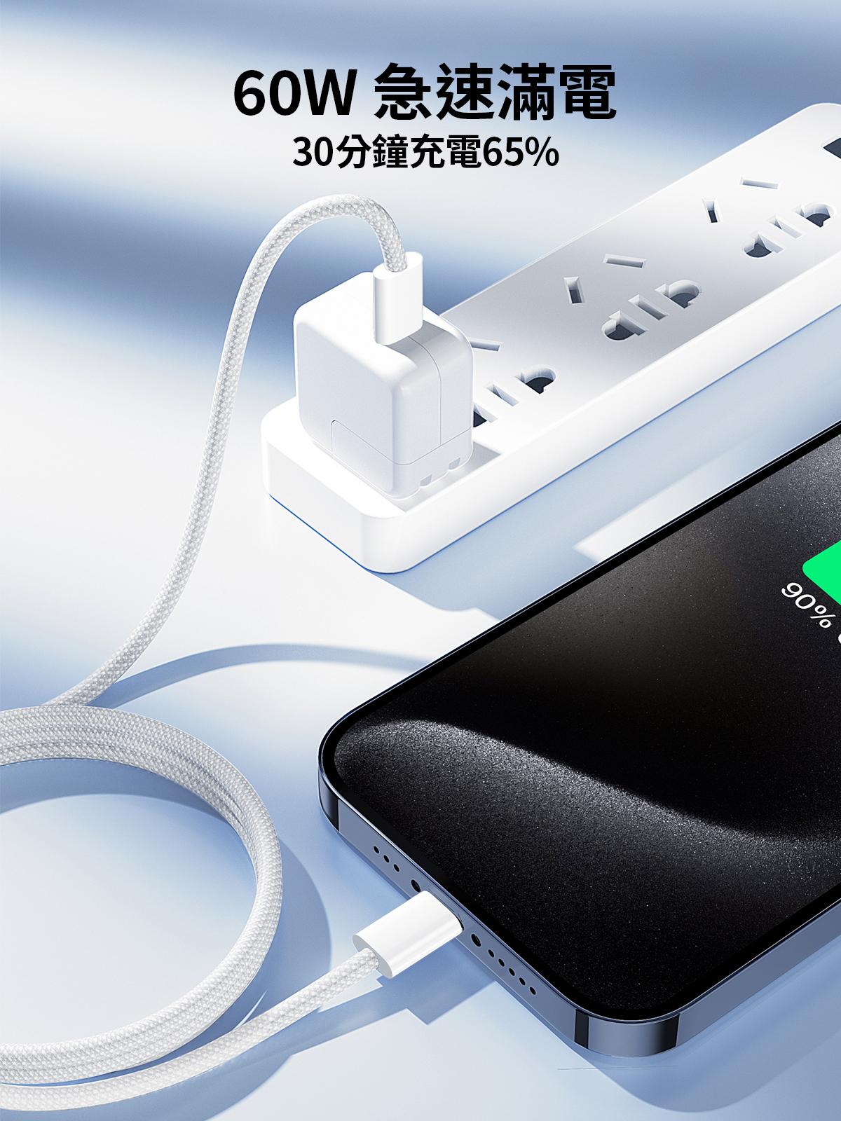 1.60W PD快充,支援iPhone, iPad, iPods快充。 30分鐘可充電65%