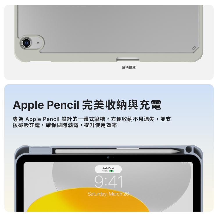 -筆槽設計支援Apple Pencil磁吸充電,隨走隨充超便利