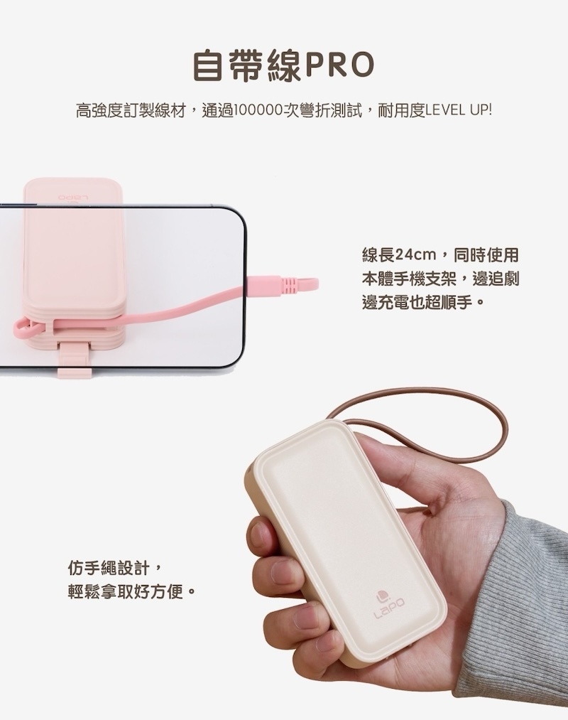 ◆ 自帶線通過10萬次彎折/搖擺使用測試,強韌耐用